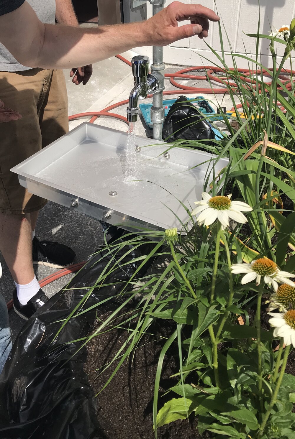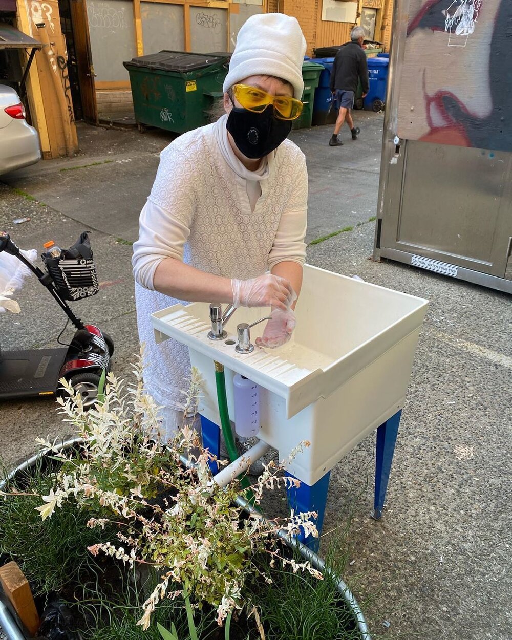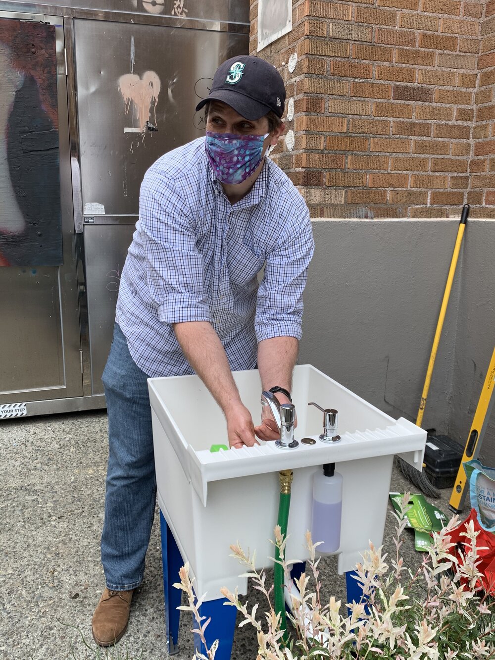 The Seattle Street Sink makes hand washing easy and accessible for anyone, anywhere The Seattle Street Sink is a do-it-yourself solution that provides a publicly accessible place for people to wash their hands. The sinks are made from off-the-shelf parts that connect to a hose bib on public or private property. Water from the sink drains to a trough filled with soil and water loving plants a combination hand washing station and rain garden!